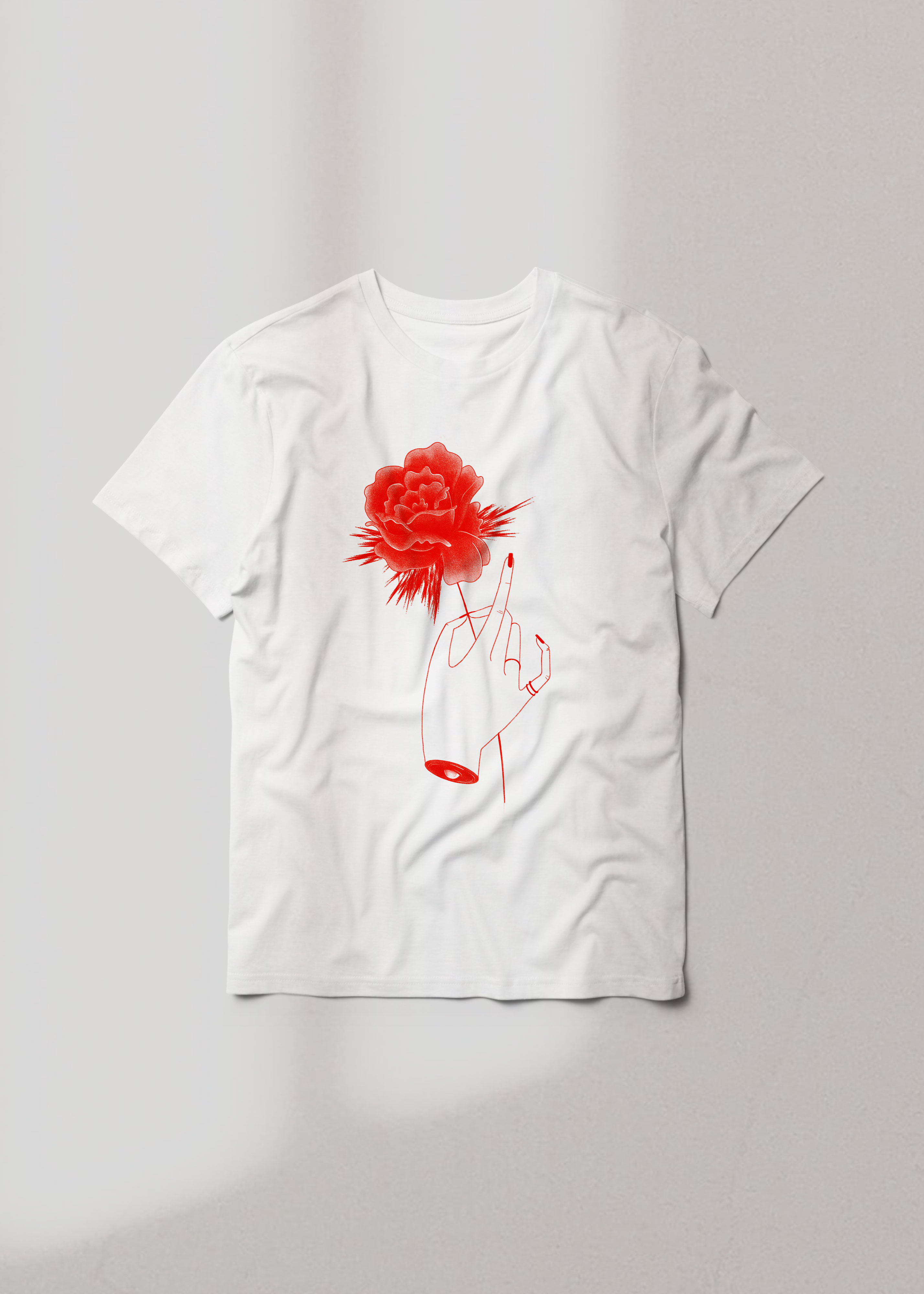 $28A screenprinted tee for stopping and smelling a rose any time of day.